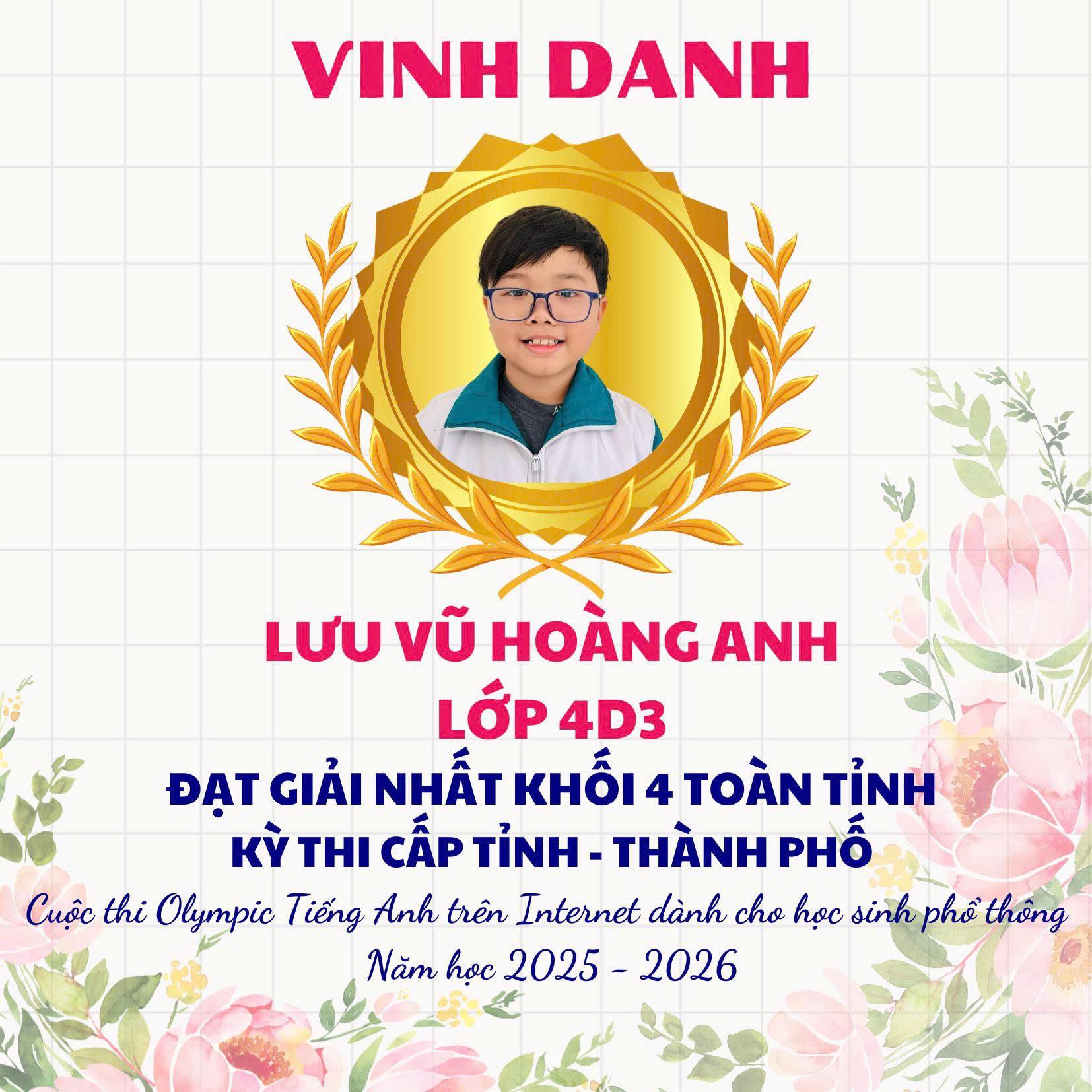 • Lưu Vũ Hoàng Anh – Lớp 4D3