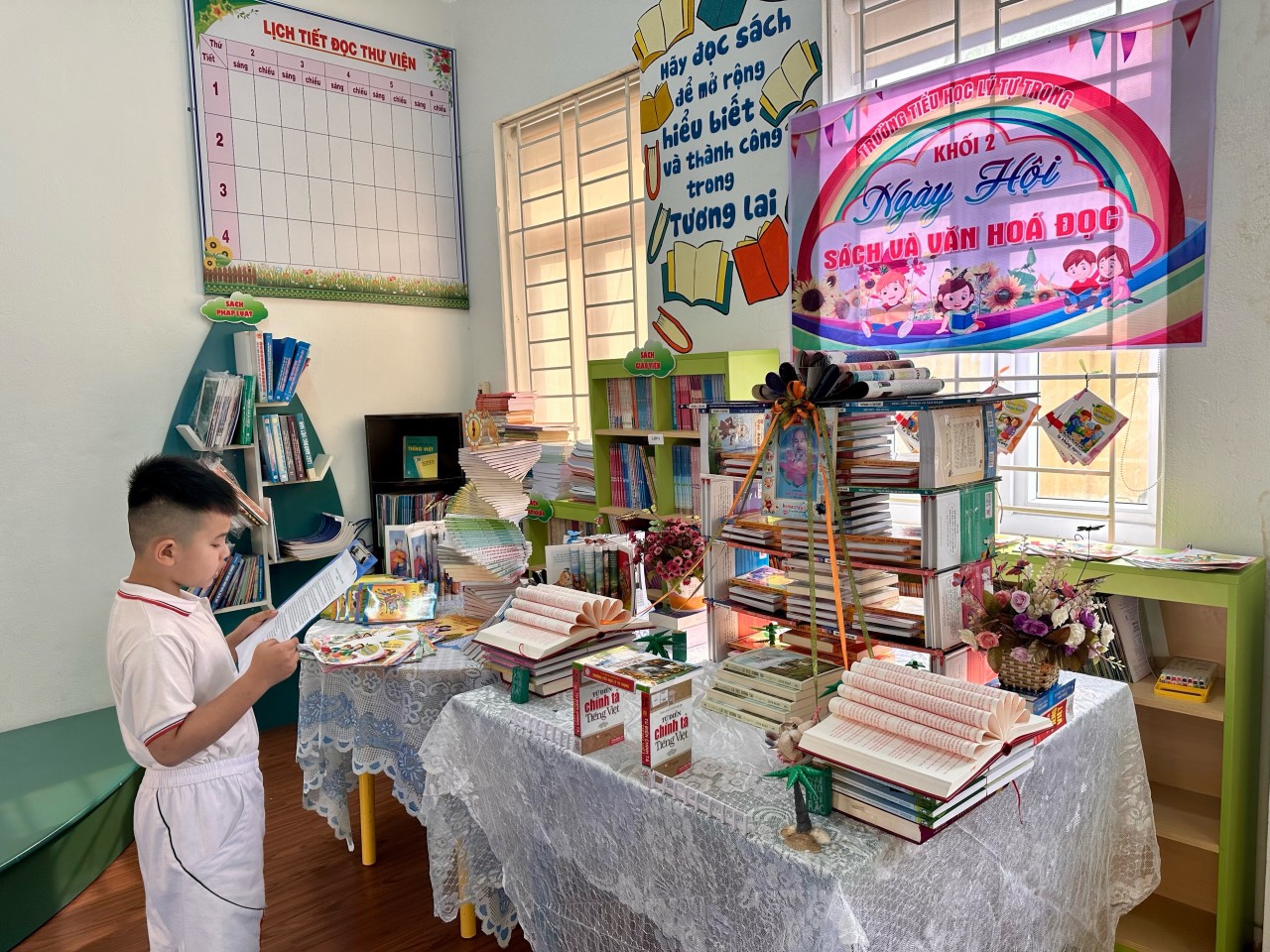 📚📒 Sáng ngày 22 tháng 4 năm 2024, trường Tiểu học Lý Tự Trọng đã tổ chức “Ngày hội đọc sách” nhằm tôn vinh các giá trị của sách, hướng tới việc củng cố, xây dựng và phát triển văn hoá đọc sách trong nhà trường.