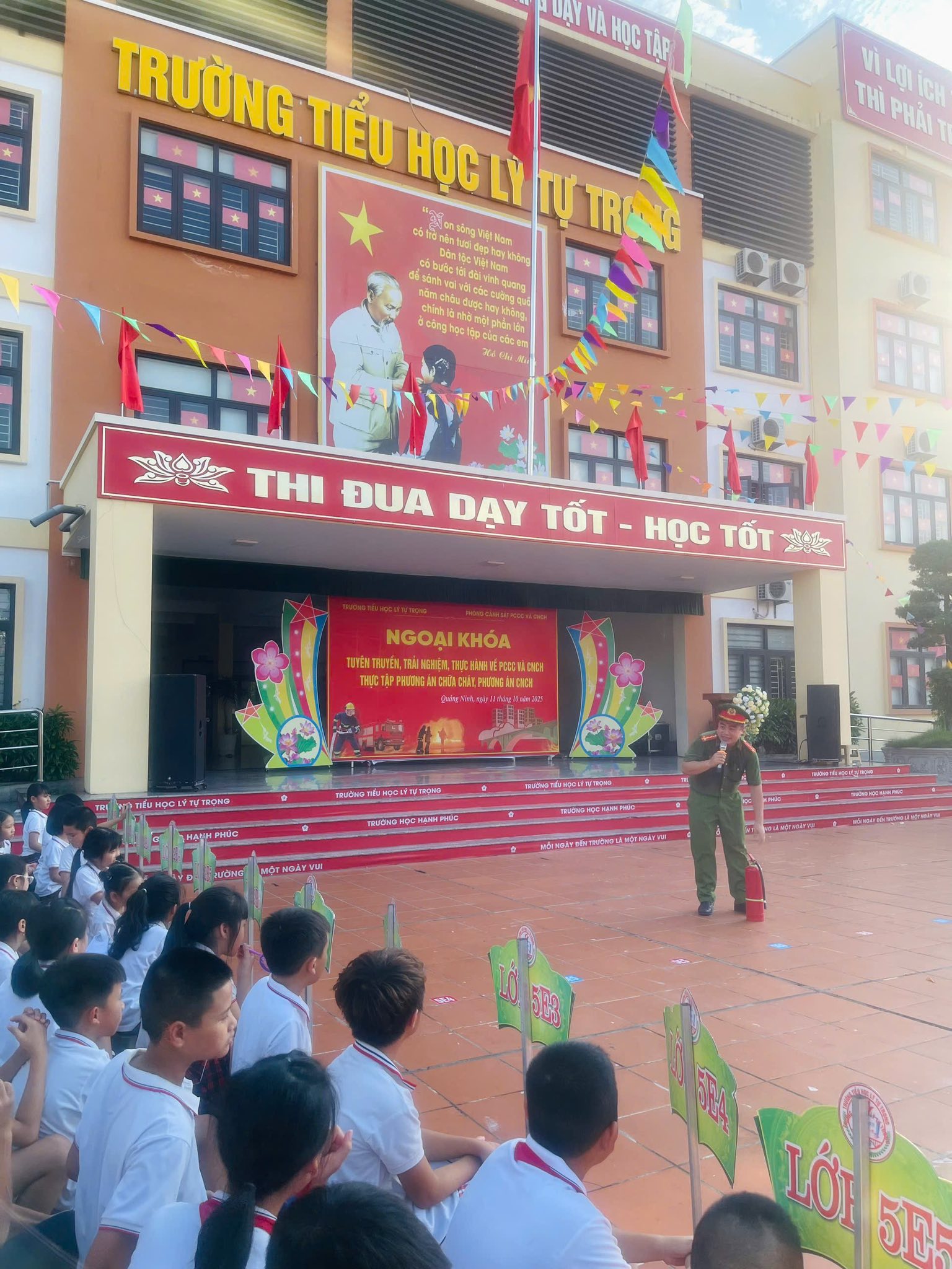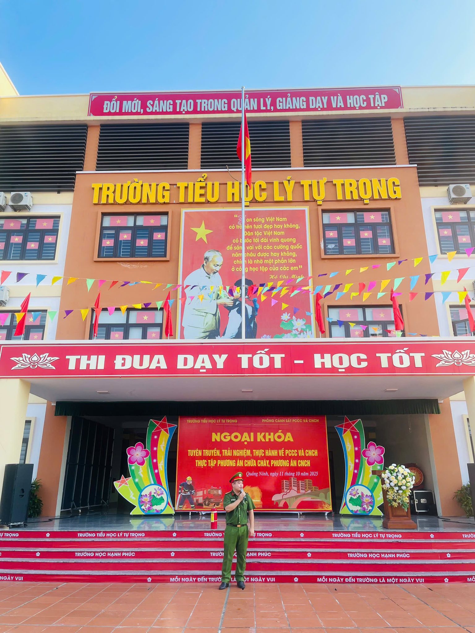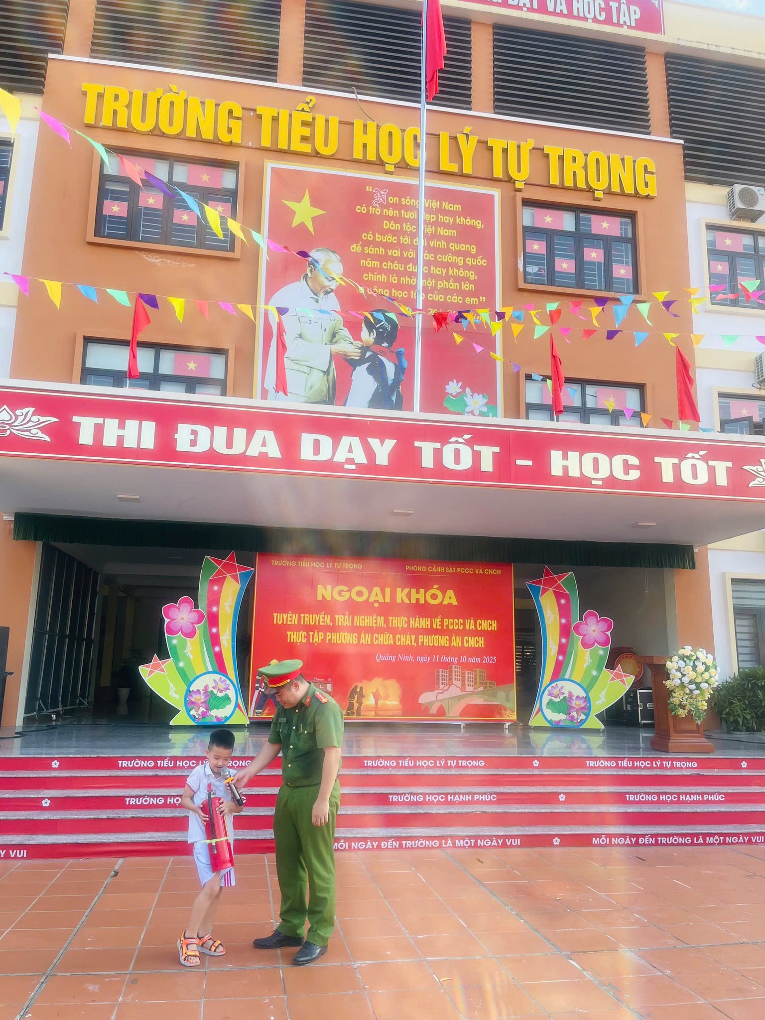 Hôm nay, ngày 11/10/2025, Trường Tiểu học Lý Tự Trọng phối hợp với Đội CC và CNCH khu vực 9, Phòng Cảnh sát Phòng cháy chữa cháy và Cứu nạn cứu hộ – Công an tỉnh Quảng Ninh tổ chức buổi ngoại khóa tuyên truyền, trải nghiệm, thực hành, thực tập phương án chữa cháy và cứu nạn, cứu hộ năm 2025.