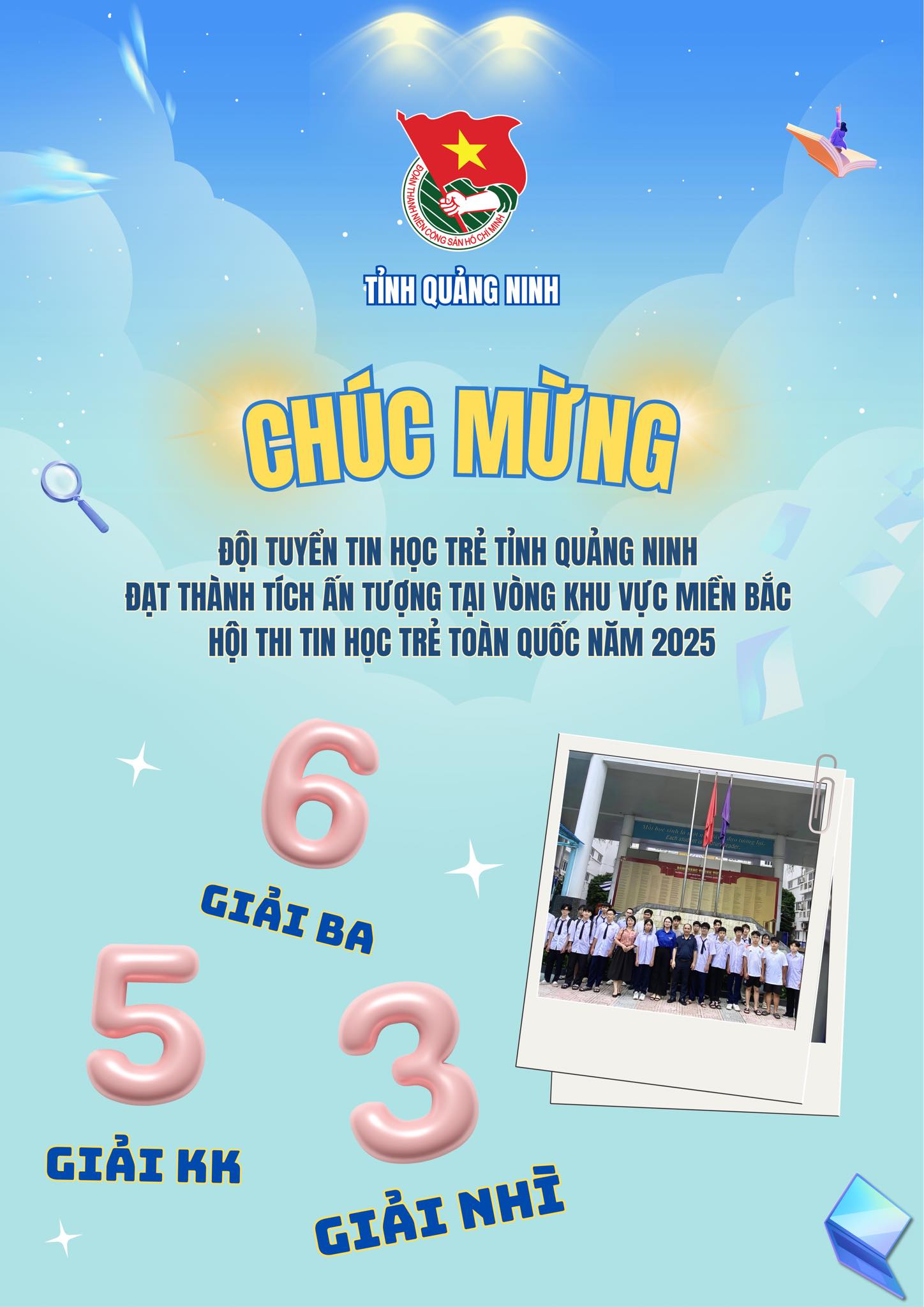 Ngày 29/6/2025, đội tuyển Tin học trẻ tỉnh Quảng Ninh gồm 29 thí sinh đã tham gia Vòng Khu vực miền Bắc Hội thi Tin học trẻ toàn quốc năm 2025. Các em được chia theo 7 bảng thi, đại diện cho nhiều khối lớp và trường học trong toàn tỉnh.