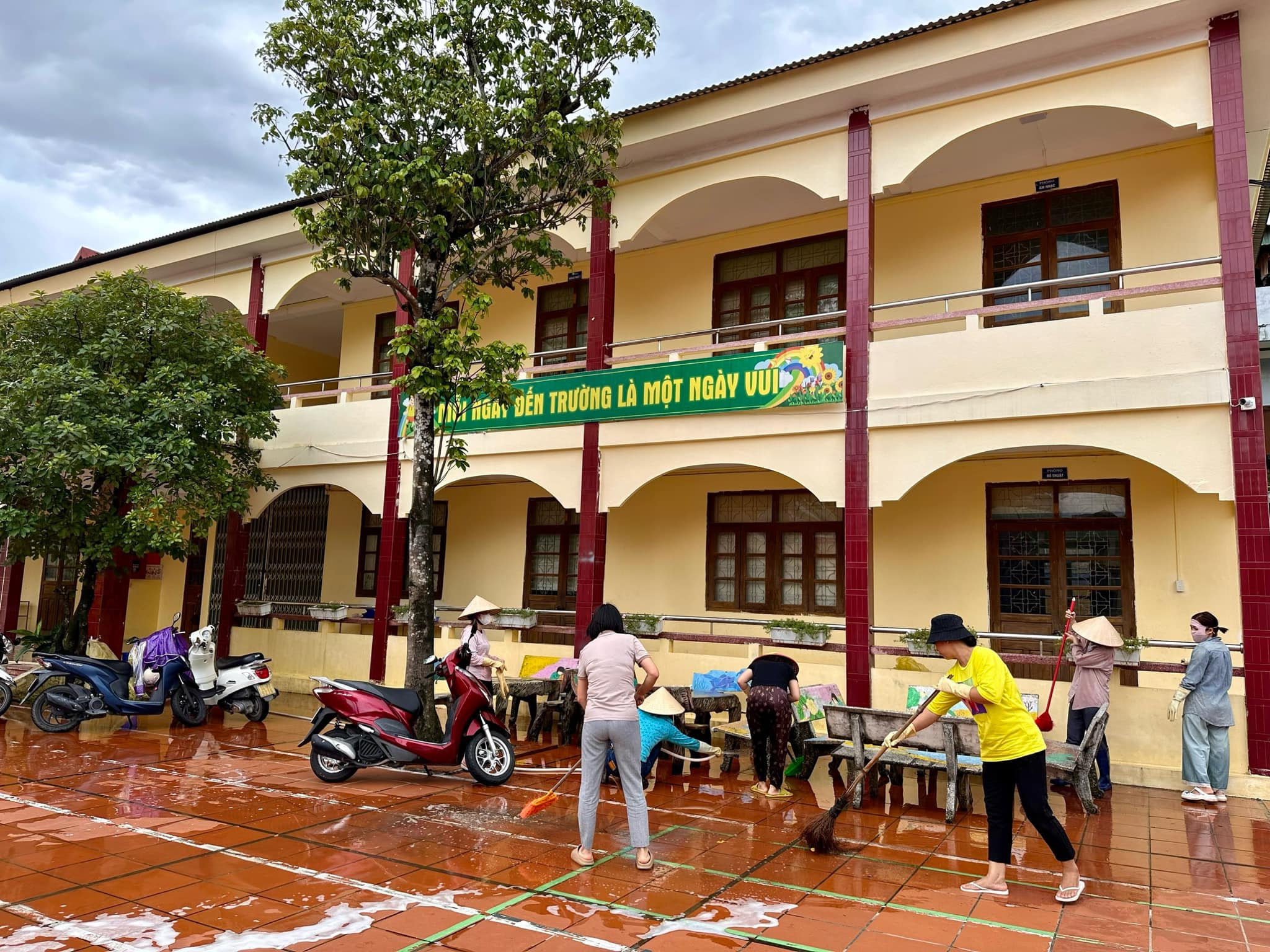Để chuẩn bị tốt các điều kiện cho học sinh tới trường, cán bộ, giáo viên, nhân viên nhà trường chuẩn bị cơ sở vật chất, dọn dẹp trường lớp để đảm bảo môi trường xanh, sạch, đẹp và an toàn sẵn sàng chào đón các em học sinh trở lại mái trường với một tâm thế tốt nhất!