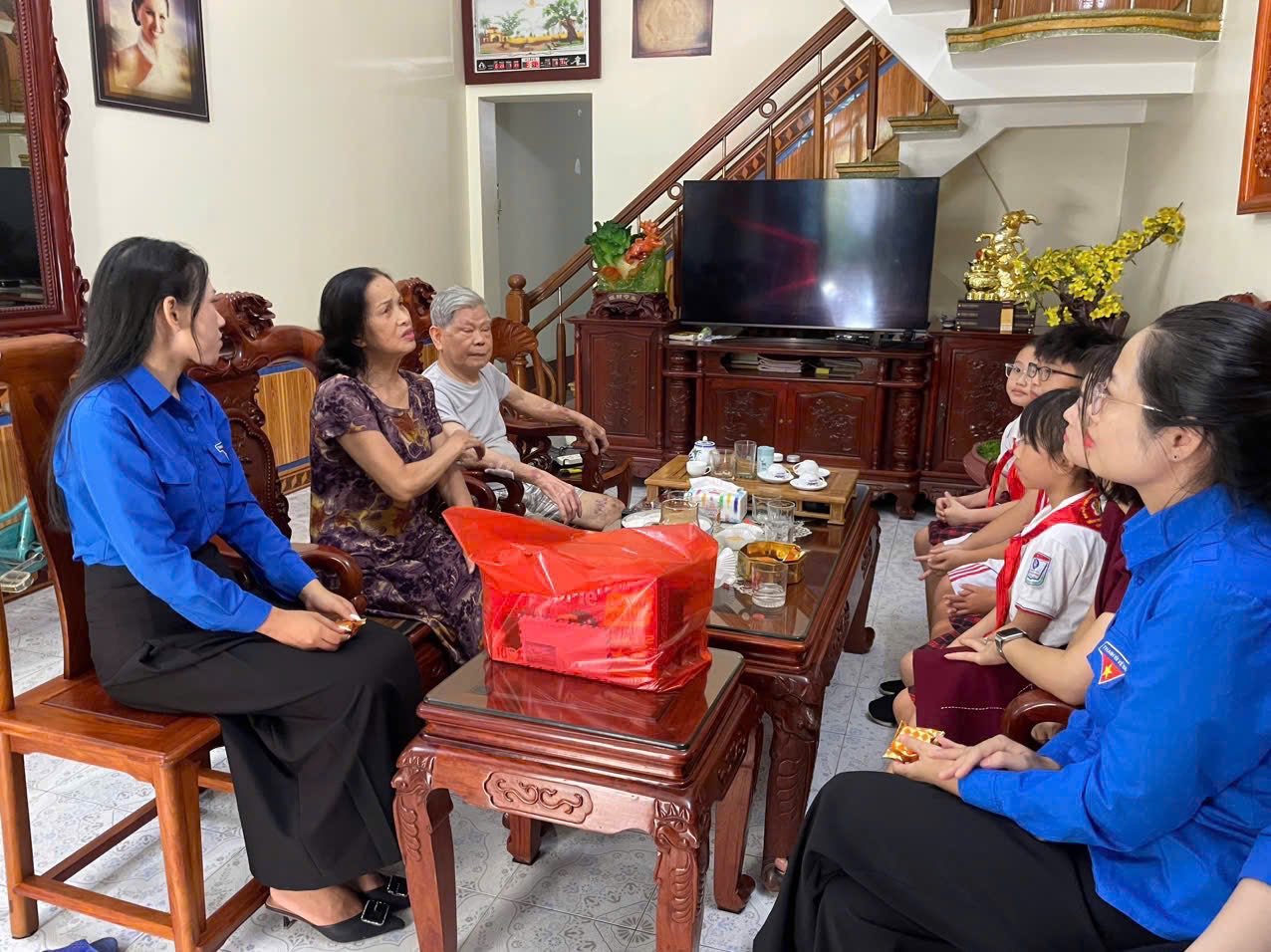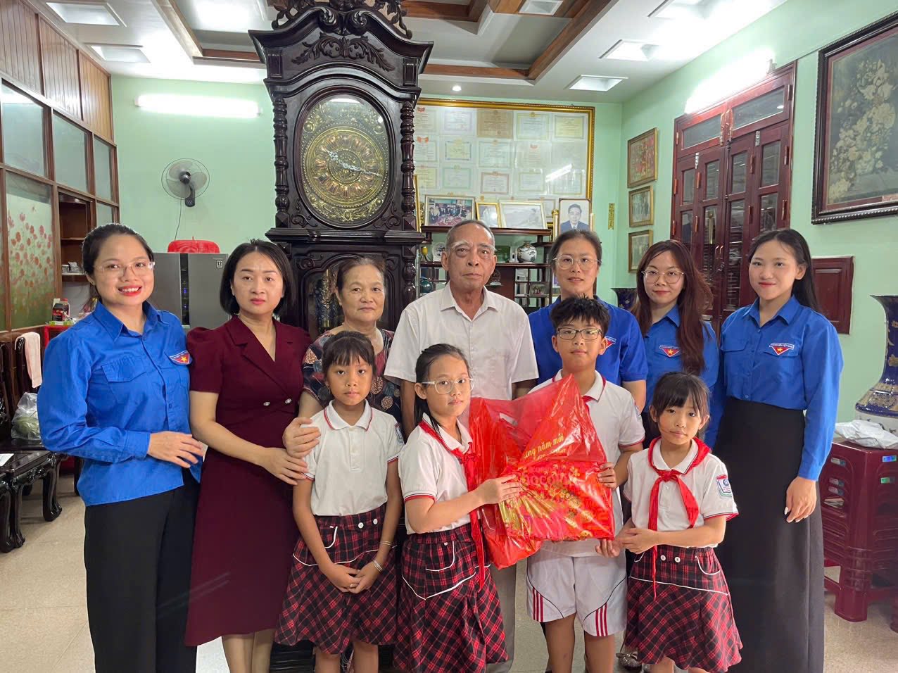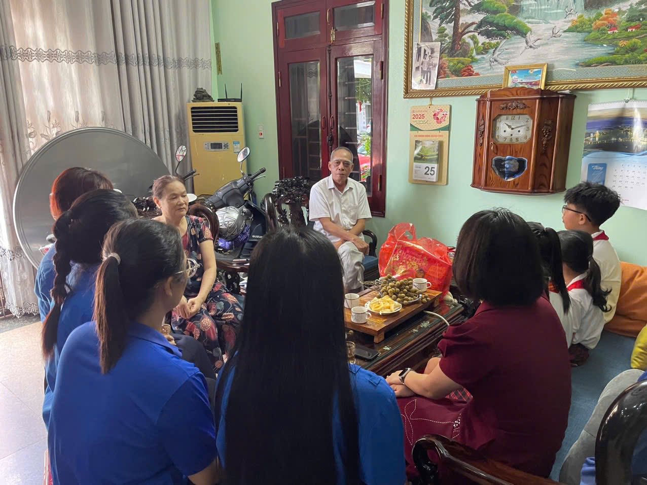 Đoàn đã ân cần thăm hỏi sức khỏe, đời sống sinh hoạt hằng ngày của các gia đình, đồng thời bày tỏ lòng biết ơn sâu sắc đối với những cống hiến của các bác đã từng chiến đấu trên chiến trường, sự hy sinh thầm lặng của các thế hệ đi trước để chúng cháu có được cuộc sống hòa bình, ấm no, hạnh phúc và phát triển như ngày nay.