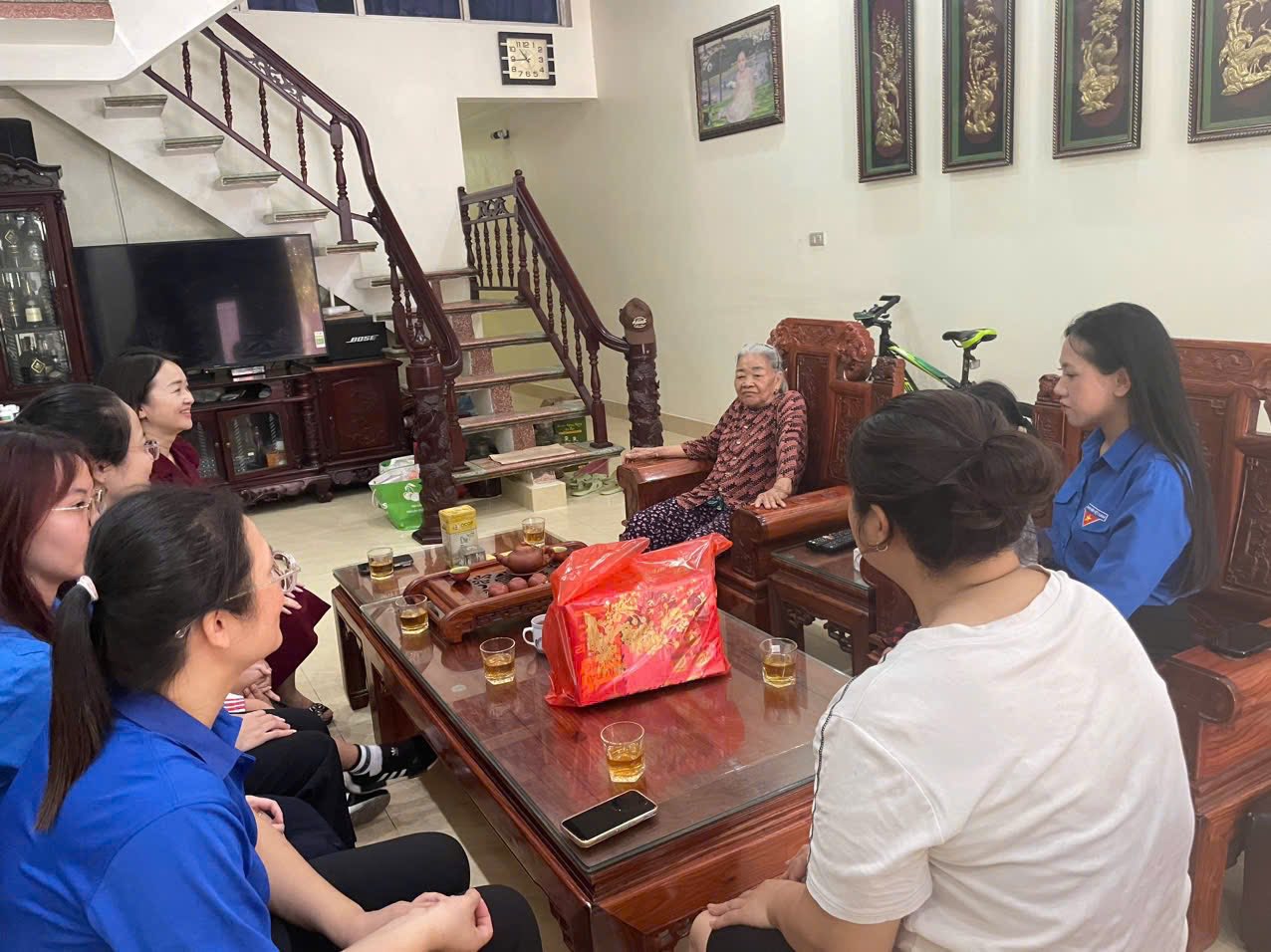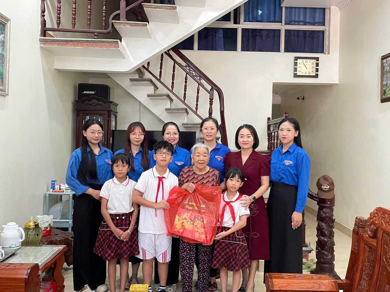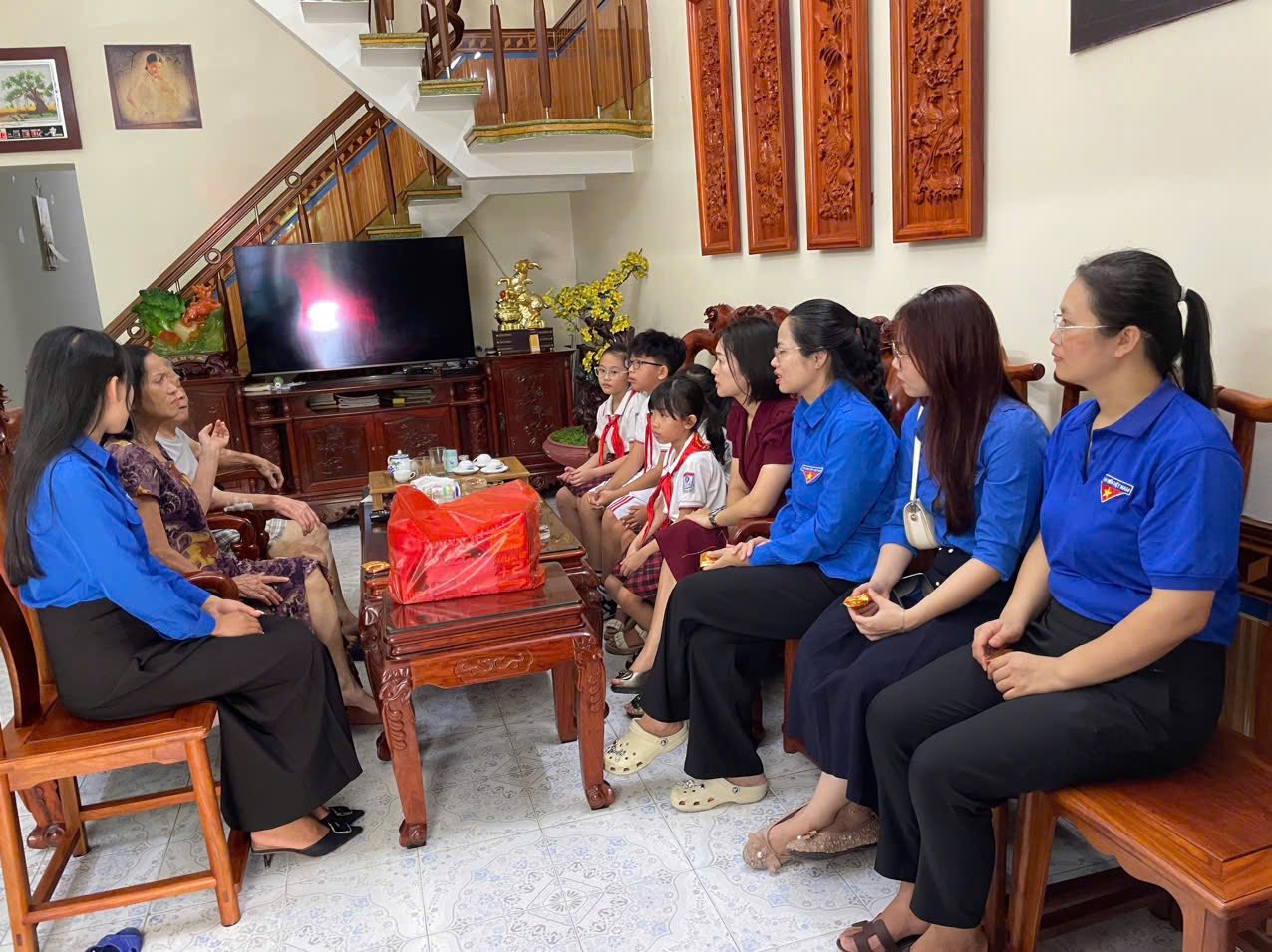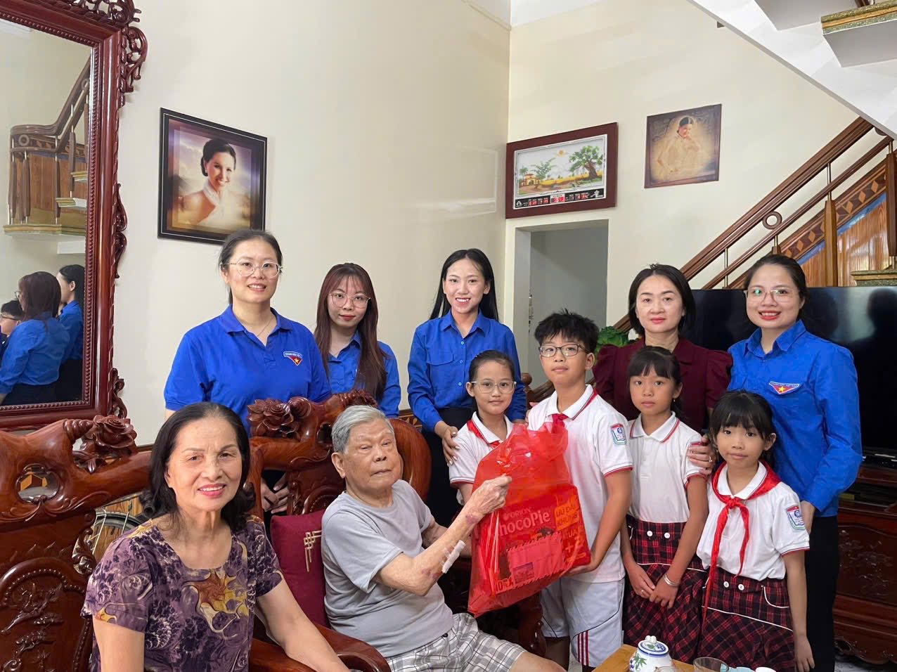 Đoàn đã ân cần thăm hỏi sức khỏe, đời sống sinh hoạt hằng ngày của các gia đình, đồng thời bày tỏ lòng biết ơn sâu sắc đối với những cống hiến của các bác đã từng chiến đấu trên chiến trường, sự hy sinh thầm lặng của các thế hệ đi trước để chúng cháu có được cuộc sống hòa bình, ấm no, hạnh phúc và phát triển như ngày nay.
